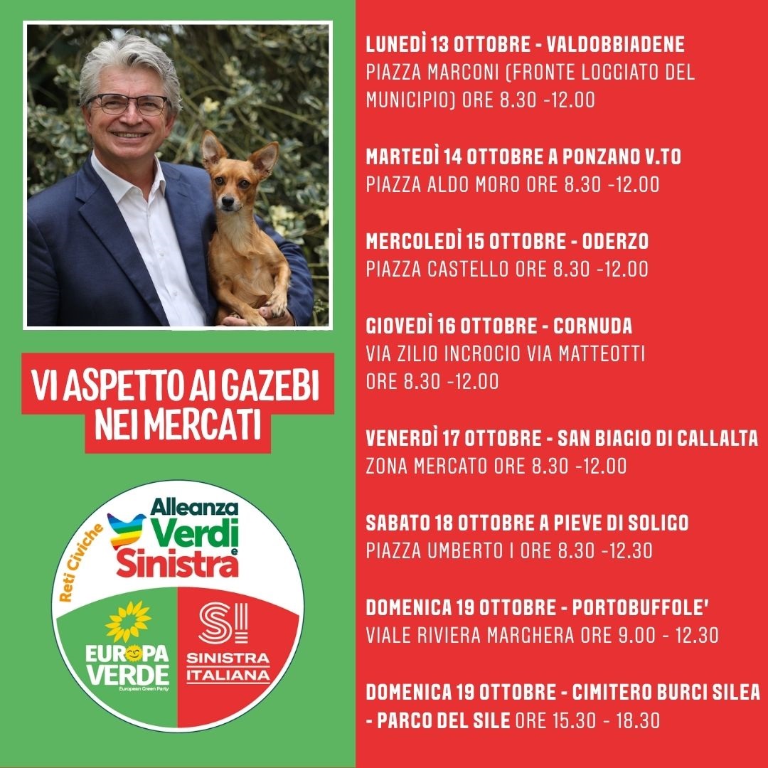 Anche la prossima settimana continuerò ad incontrarvi nei mercati con il nostro gazebo dove distribuiremo il nostro programma e il materiale elettorale.
