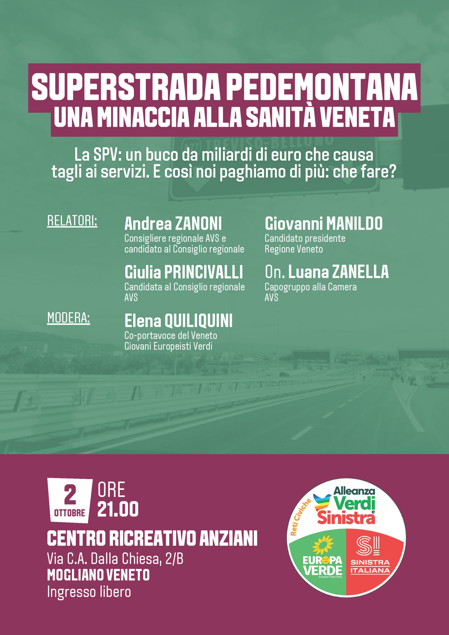 “SUPERSTRADA PEDEMONTANA: UNA MINACCIA ALLA SANITÀ” promosso da Alleanza Verdi e Sinistra.